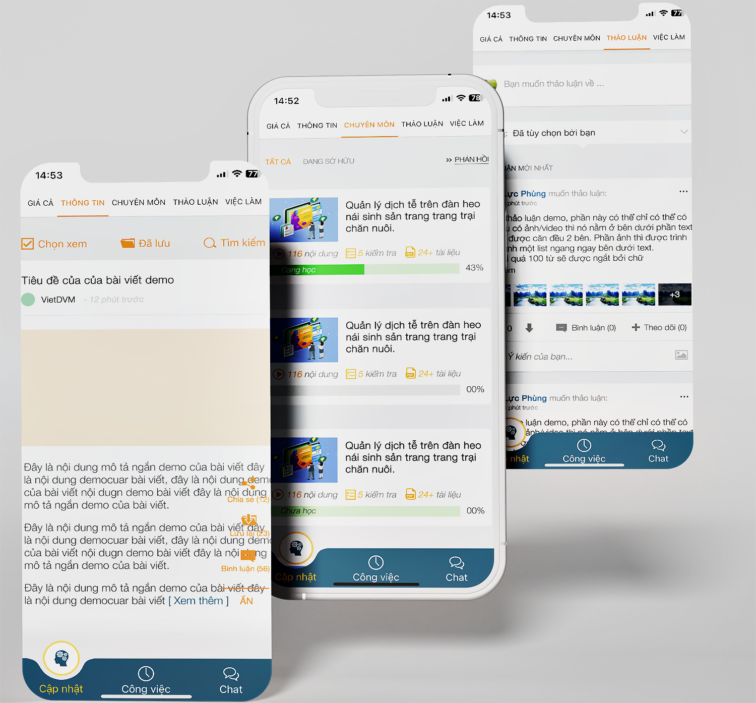 ❖ Học thực tế, Đọc thực tế rồi thì cũng cần phải Hỏi thực tế và “Hành” thực tế. Chính vì vậy, Trợ lý GetUP giúp bạn trong quá trình Học cũng như khi áp dụng trong thực tế cần phải hỏi, cần phải trao đổi, tham vấn; thì thông qua phần Thảo luận, Trợ lý GetUP sẽ giúp bạn kết nối với những chuyên gia, những người có kinh nghiệm thực tế lâm sàng lâu năm, và cả những Trang trại – để bạn có thể học hỏi từ họ cũng như được trải nghiệm những trường hợp thực tế.